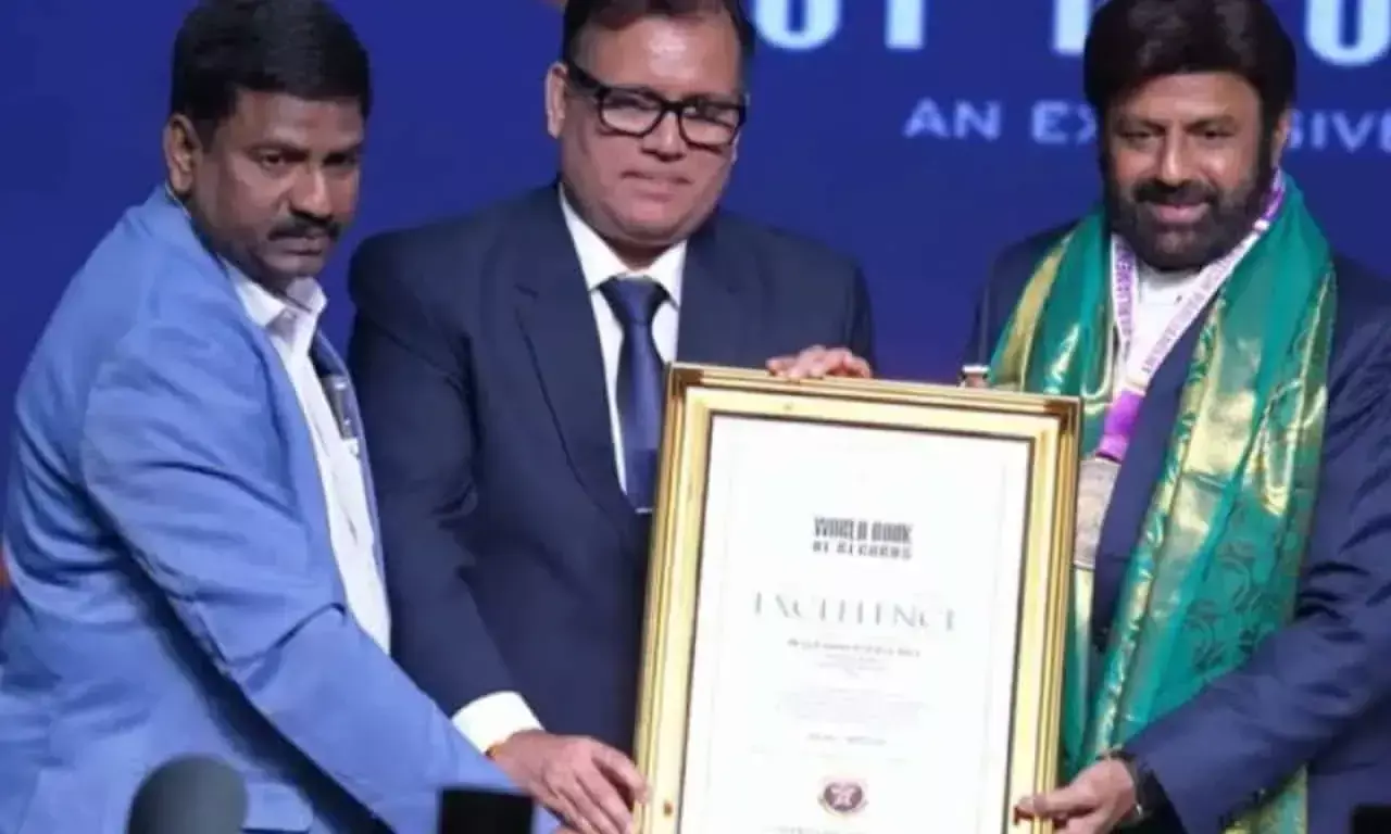 భారతీయ సినిమాలో 50 ఏళ్ల పాటు నటుడిగా సేవలందించినందున నందమూరి బాలకృష్ణను వరల్డ్ బుక్ ఆఫ్ రికార్డ్స్ తన గోల్డ్ ఎడిషన్లో చేర్చింది. రెండు తెలుగు రాష్ట్రాల మంత్రులు బండి సంజయ్, సినిమాటోగ్రఫీ మంత్రి కోమటిరెడ్డి వెంకట్ రెడ్డి, ఏపీ మంత్రి నారా లోకేష్ తదితరులు హాజరయ్యారు. ఈ కార్యక్రమంలో ఎన్బీకే ప్రదర్శించిన ధాతృత్వంపై తెలంగాణ వ్యాప్తంగా హర్షం వ్యక్తమైంది. కార్యక్రమానికి హాజరైన గౌరవనీయ మంత్రులు ఇతర ప్రముఖులు బాలకృష్ణ శుభాకాంక్షలు తెలిపారు.