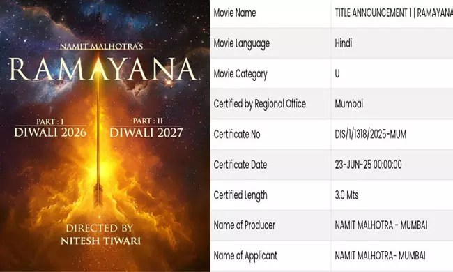తాజా అప్ డేట్ ప్రకారం.. టైటిల్ ప్రకటన వీడియోను తిరిగి సెన్సార్ చేశారు. ఇప్పుడు పూర్తిగా 3 నిమిషాలకు పొడిగించారని సమాచారం. అయితే ఈ ప్రకటన ఎప్పుడు? అనేది ఇంకా టీమ్ వెల్లడించలేదు.అధికారిక విడుదల తేదీ ని ప్రకటించాల్సి ఉంది. సన్నీ డియోల్, యష్, కాజల్ అగర్వాల్, రవి దూబే, అరుణ్ గోవిల్, లారా దత్తా తదితరులు ఇందులో ముఖ్యమైన పాత్రల్లో నటిస్తున్నారు. నమిత్ మల్హోత్రా, యష్ ఈ చిత్రానికి నిర్మాతలు. రామాయణం రెండు భాగాలను వరస సంవత్సరాల్లో రిలీజ్ చేయాలనేది ప్లాన్. 2026 దీపావళి, 2027 దీపావళి కానుకగా గ్రాండ్ గా థియేట్రికల్ విడుదల చేయాలనేది ప్లాన్.