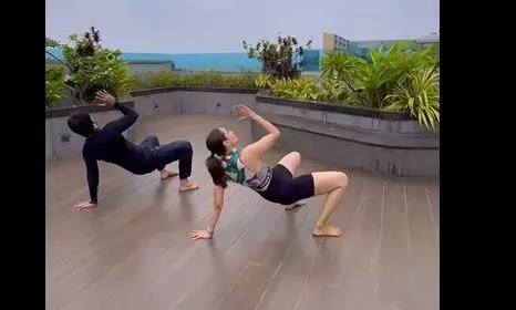 By: Tupaki Desk | 27 May 2025 1:41 PM ISTహీరోయిన్స్ తమ ఫిజిక్ను స్లిమ్గా, అందంగా కనిపించడం కోసం రెగ్యులర్గా వర్కౌట్స్ చేయడం అనేది మనం చూస్తూ ఉంటాం. ఎంతో మంది హీరోయిన్స్ జిమ్లో ఉన్న ఫోటోలు, వీడియోలను షేర్ చేస్తూ ఉంటారు. పలువురు ముద్దుగుమ్మలు జిమ్లో వర్కౌట్స్ చేసిన ఫోటోలు, వీడియోలను షేర్ చేస్తూ ఉంటారు. గతంలో పలు సార్లు ప్రగ్యా జైస్వాల్ సైతం తన వర్కౌట్ ఫోటోలు, వీడియోలు షేర్ చేసింది. అయితే ఈసారి స్పెషల్గా జిమ్లో కాకుండా ఆరు బయట డాన్స్ మూమెంట్స్ చేసినట్లు వర్కౌట్స్ చేసిన వీడియోను షేర్ చేసింది. ట్రైనర్తో కలిసి ప్రగ్యా జైస్వాల్ చేసిన ఈ విభిన్నమైన వర్కౌట్ వీడియను చాలా మంది లైక్ చేస్తున్నారు.