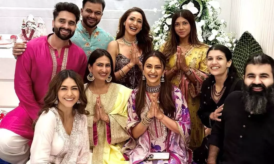 ఇప్పుడు వినాయక చవితిని పురస్కరించుకుని బెస్ట్ ఫ్రెండ్స్ ఓ చోట కలిసారు. ఈ వేడుకలో రకుల్ ప్రీత్ సింగ్ తన భర్త జాకీ భగ్నానీతో కలిసి కనిపించగా, చిరు నవ్వులు చిందిస్తూ ప్రగ్య జైశ్వాల్, తన కుటుంబం, ఇతర స్నేహితులు ఫ్రేమ్ లో అందంగా ఒదిగిపోయారు. ఈ టీమ్ తో మృణాల్ కూడా చేరడంతో ఫ్రేమ్ కి మరింత అందం పెరిగింది. ``ఈ సంవత్సరంలో అత్యంత శుభప్రదమైన.. ఉత్తమ సమయం ఇది.. గణపతి బప్పా మోరియో!`` అంటూ ఆహ్లాదకరమైన క్యాప్షన్ తో ఈ ఫోటోలను ప్రగ్య జైశ్వాల్ షేర్ చేసింది. ప్రస్తుతం ఈ స్పెషల్ ఫోటోషూట్ అంతర్జాలంలో వైరల్ గా మారింది. అయితే ఈ ఫోటోగ్రాఫ్ లో రకుల్, ప్రగ్యలకు అత్యంత సన్నిహితురాలైన మంచు లక్ష్మి ప్రసన్న కనిపించకపోవడం లోటు! అని అభిమానులు కామెంట్ చేస్తున్నారు.