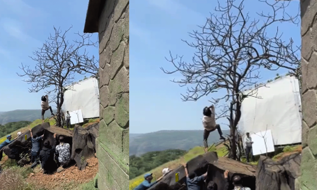 అయితే ఇది చాలా రిస్కీ షాట్. అది వీడియో చూస్తేనే టెన్షన్ గా ఉంటుంది. అలాంటిది చెర్రీ స్వయంగా అలాంటి రిస్క్ కు ఒప్పుకొని చేస్తున్నారు. ఒకవేళ చెట్టు కొమ్మ విరిగినా, అక్కడున్న బండరాయి జారినా పక్కనే లోయలోకి జారే ప్రమాదం ఉంది. అక్కడి లొకేషన్ కూడా ప్రమాదంగానే కనిపిస్తుంది. అయినప్పటికీ సినిమా కోసం చరణ్ చేస్తున్న సాహసం సగటు సినిమా ప్రేక్షకుడికి గూస్ బంప్స్ తెప్పిస్తోంది. ప్రస్తుతం దీనికి సంబంధించిన వీడియో సోషల్ మీడియాలో వైరల్ గా మారింది.