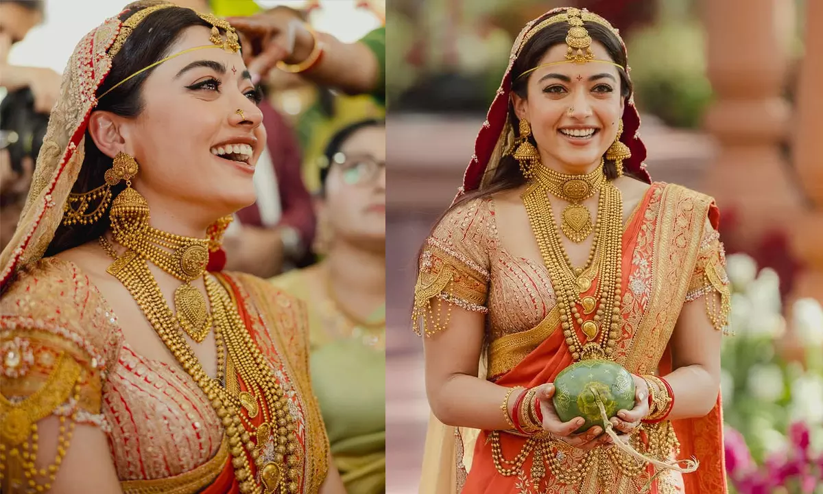 రష్మిక ధరించిన నగలు చూస్తుంటే ఏదో కోటలోని రాణిని చూస్తున్నట్టుగా ఉంది కదూ.. ఈ అద్భుతమైన ఆభరణాలను రూపొందించడానికి ప్రముఖ 'శ్రీ జ్యువెలర్స్' సంస్థకు దాదాపు 10 నెలల సమయం పట్టిందట. దక్షిణ భారత దేశ నిర్మాణ శైలిని ప్రతిబింబించేలా, యాంటిక్ మ్యాట్ ఫినిషింగ్తో వీటిని తయారు చేశారు. లోతైన నక్షీ పనితనం, సన్నని రవ్వ డిటైలింగ్తో కూడిన 11 రకాల ఆభరణాలను రష్మిక ధరించింది. సాంప్రదాయ చోకర్లు, భారీ హారాలు ఆమెకు ఒక రాయల్ లుక్ను ఇచ్చాయి. ఈ నగలు కేవలం బంగారం మాత్రమే కాదు, మన సంస్కృతికి నిదర్శనంగా నిలిచాయి.