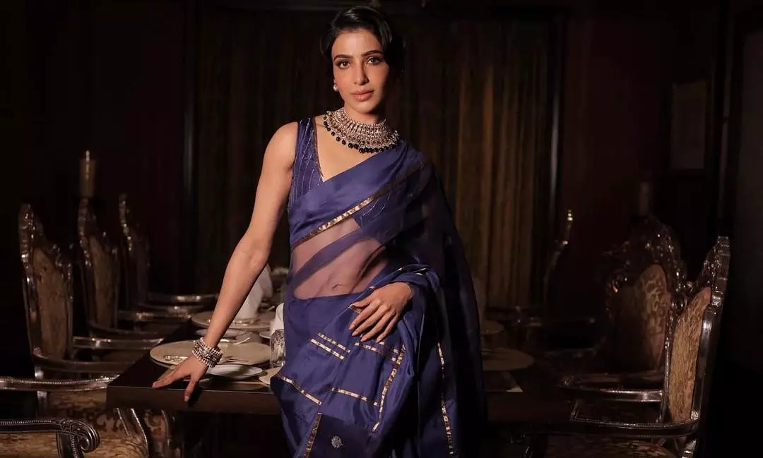 ఇదిలా ఉండగా ఒకవైపు సోషల్ మీడియాలో కూడా యాక్టివ్ గా ఉంటూ గ్లామర్ ఫోటోలను షేర్ చేసే ఈమె..మరొకవైపు తాను ఎక్కడికి వెళ్లినా అందుకు సంబంధించిన విషయాలను కూడా అభిమానులతో పంచుకుంటూ ఉంటుంది. తాజాగా రాబ్ రిపోర్ట్ ఇండియా లగ్జరీ మ్యాగజైన్ కవర్ పేజీ కోసం కొన్ని ఫోటోలను పంచుకుంది. బ్లూ కలర్ చీర కట్టులో కనిపించి అందరి దృష్టిని ఆకట్టుకుంది. ముఖ్యంగా బ్లూ కలర్ ట్రాన్స్పరెంట్ చీర ధరించిన ఈమె అందులో తన అందాలను వలకబోస్తూ ఫోటోలను షేర్ చేసింది. స్లీవ్ లెస్ బ్లూ కలర్ బ్లౌజ్ ధరించిన ఈమె...అందుకు తగ్గట్టుగా బ్లూ కలర్ పూసలతో అందంగా డిజైన్ చేసిన చౌకర్ ను ధరించింది. తన జుట్టును అద్భుతంగా ముడివేసి తన మేకోవర్ను స్టయిల్ చేసుకుంది. ప్రస్తుతం సమంత ఇంస్టాగ్రామ్ ద్వారా షేర్ చేసిన ఫోటోలు సోషల్ మీడియాలో వైరల్ గా మారుతున్నాయి.