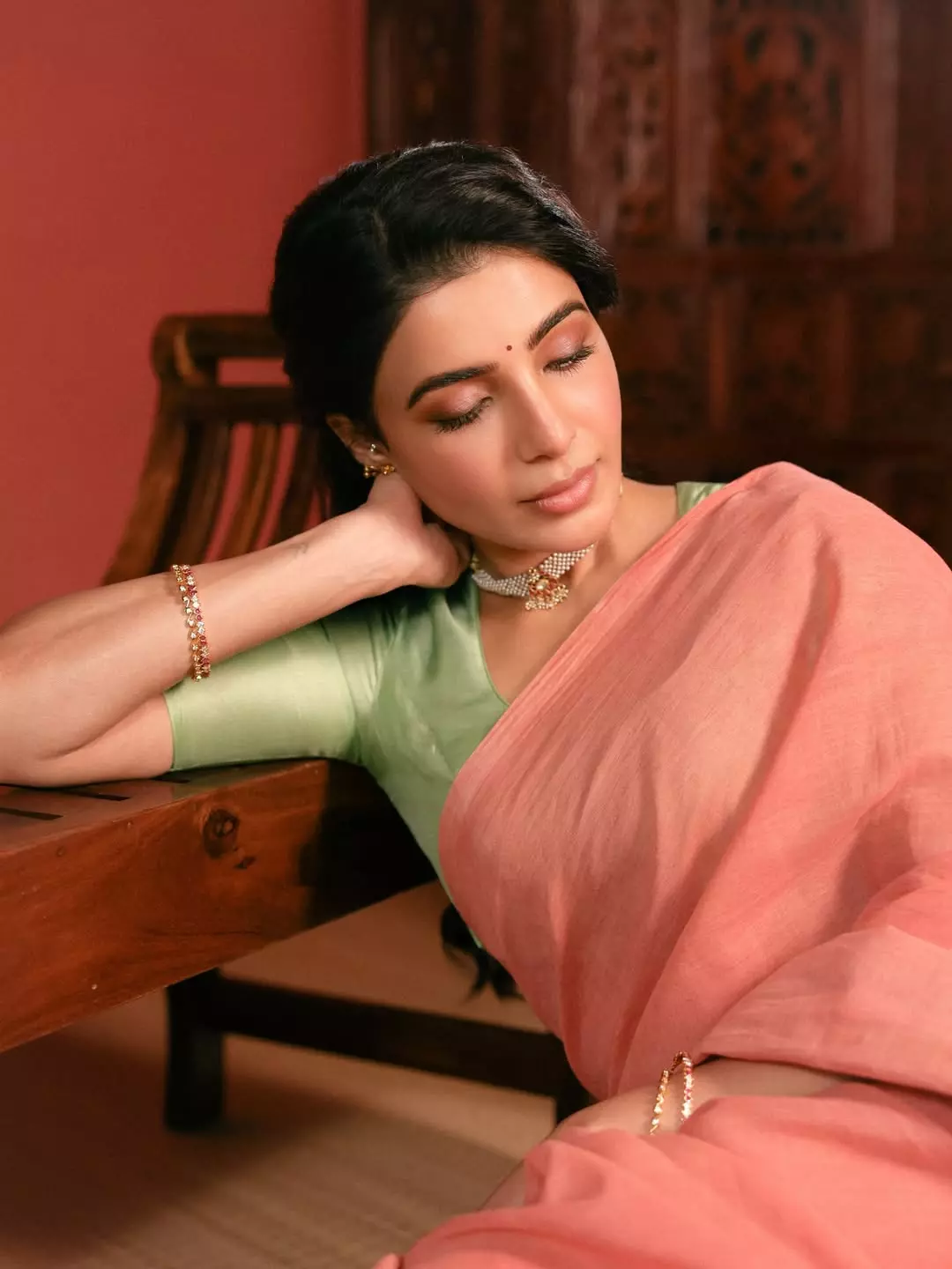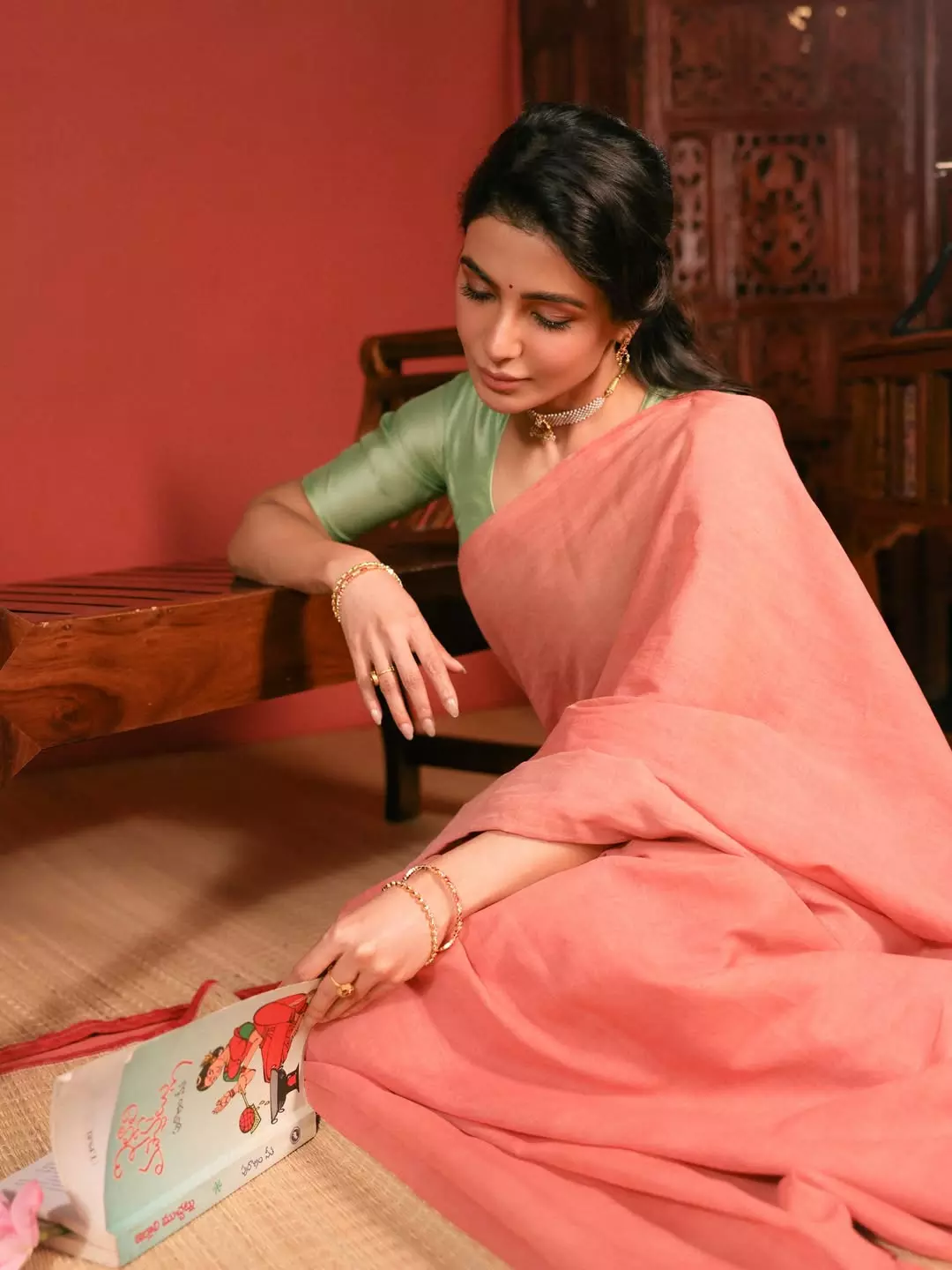 సమంత తాజాగా ఇన్స్టాగ్రామ్లో షేర్ చేసిన ఫోటోల్లో చాలా సింపుల్గా, ట్రెడిషనల్ లుక్లో కనిపించింది. పింక్ కలర్ చీర, లైట్ గ్రీన్ బ్లౌజ్ ధరించి, బెంచ్ మీద కూర్చున్న భంగిమ అందరినీ ఆకట్టుకుంటోంది. ఆమె హెయిర్ స్టైల్, సింపుల్ జ్యువెలరీ చీర అందాన్ని మరింత పెంచాయి.ఇక ఈ ఫోటోలను చూసిన అభిమానులు "చీరలో సమంత చాలా అందంగా ఉంది", "ట్రెడిషనల్ స్టైల్ ఆమెకు బాగా సూట్ అవుతుంది" అంటూ కామెంట్ల వర్షం కురిపిస్తున్నారు. చాలా రోజుల తర్వాత ఆమె ఫుల్ ట్రెడిషనల్ లుక్లో కనిపించడం ఫ్యాన్స్కు పండుగలా మారింది.