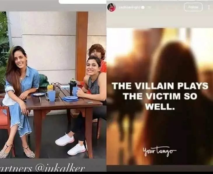 అలా ఈ కామెంట్ల నుంచి అభిమానులు ఇంకా బయటపడక ముందే సమంత పర్సనల్ మేకప్ స్టైలిస్ట్ సద్నా సింగ్ కూడా ఇంస్టాగ్రామ్ స్టోరీస్ లో ఒక విషయాన్ని పంచుకుంది. ఇక్కడ ఆశ్చర్యకరమైన మరో విషయం ఏమిటంటే.. నిన్న సమంత పెళ్లి తర్వాత ఆమె పర్సనల్ మేకప్ స్టైలిస్ట్ సద్నా సింగ్ సమంత ను ఇన్స్టా లో అన్ ఫాలో చేయడమే కాకుండా "బాధితురాలిగా విలన్ చాలా బాగా నటించింది" అంటూ తన ఇన్స్టా స్టోరీలో రాసుకుంది. ప్రస్తుతం ఇది వైరల్ అవ్వడంతో.. సమంతను సద్నా విలన్ అనేసిందా? అంటూ అభిమానులతో పాటు నెటిజన్లు కూడా అనుమానాలు వ్యక్తం చేస్తున్నారు. ఏది ఏమైనా నిన్న పూనమ్ అహంకారి అంటూ పోస్ట్ పెట్టగా.. ఈరోజు సద్నా ఏకంగా విలన్ అంటూ పోస్ట్ పెట్టింది. అయితే ఇద్దరూ కూడా ఎవరిని ఉద్దేశించి ఈ పోస్ట్ లు పెట్టారో తెలియదు కానీ ఈ పోస్ట్ లను మాత్రం నెటిజన్స్ సమంతాకు ఆపాదిస్తున్నారు.