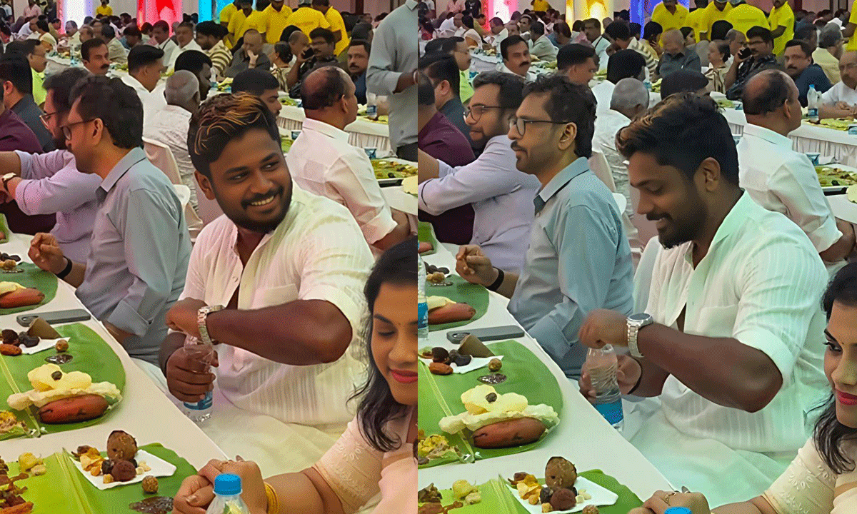 By: Sivaji Kontham | 11 March 2026 11:25 PM ISTఇటీవల ముగిసిన టీ20 వరల్డ్ కప్లో భారత జట్టు విజేతగా నిలిచిన సంగతి తెలిసిందే. ఆ జట్టులో సభ్యుడైన సంజు శాంసన్ ప్రస్తుతం దేశవ్యాప్తంగా విపరీతమైన క్రేజ్ సంపాదించుకున్నాడు. తాజాగా ఒక ఇన్ స్టాగ్రామ్ వీడియో సోషల్ మీడియాలో వైరల్ అవుతోంది. ఇందులో సంజు ఒక ప్రత్యేక విందులో పాల్గొని అభిమానులతో కలిసి భోజనం చేస్తూ సందడి చేశారు. తన వినయ విధేయతలతో అందరినీ ఆకట్టుకున్న సంజు.. వచ్చిన వారందరికీ సెల్ఫీలు ఇస్తూ వారిలో ఒకరిగా కలిసిపోయారు.