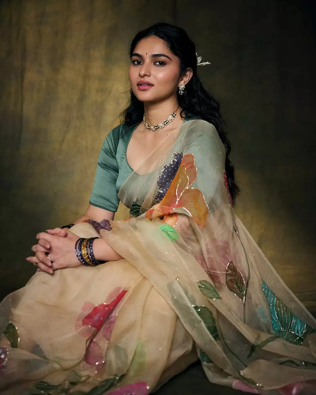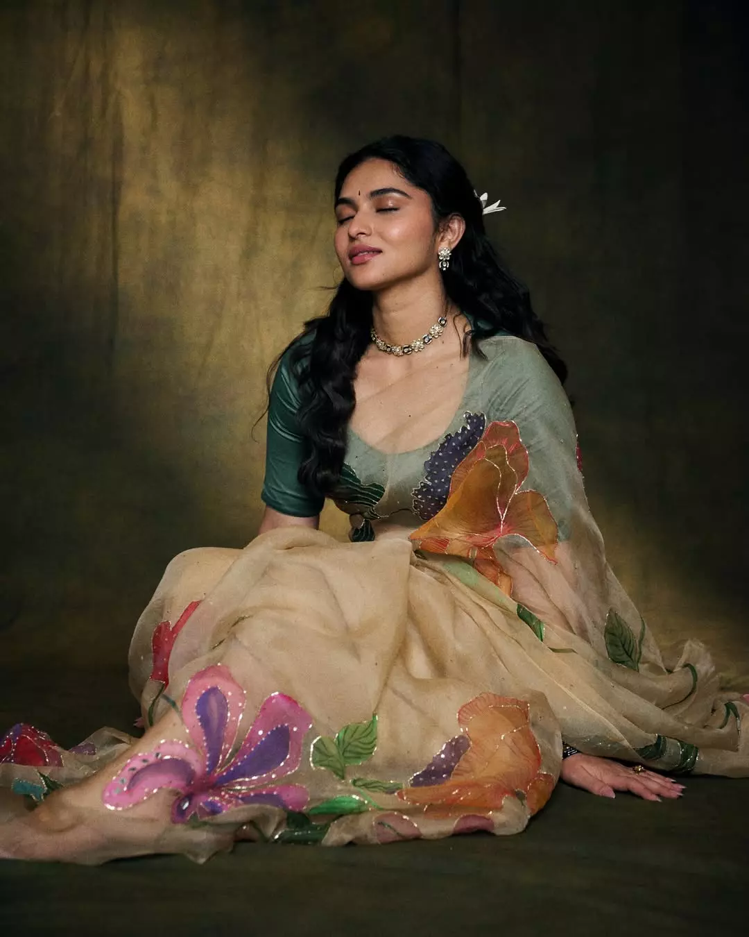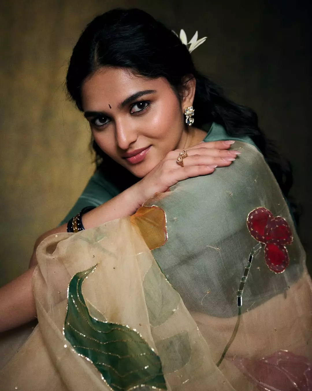 తాజాగా సోషల్ మీడియాలో కాయాదు పోస్ట్ చేసిన ఫోటోలు అందరినీ ఆకట్టుకుంటున్నాయి.రంగు రంగులతో కూడిన హ్యాండ్ పెయింటెడ్ బొటానికల్ ప్రింట్స్ ఉన్న షీర్ ఆర్గాంజా చీరలో ఆమె ఎంతో హుందాగా కనిపిస్తోంది. దీనికి కాంబినేషన్గా సేజ్ గ్రీన్ కలర్ బ్లౌజ్ ధరించి, మోడ్రన్ అండ్ ట్రెడిషనల్ లుక్ను పర్ఫెక్ట్గా మేనేజ్ చేసింది. మినిమల్ మేకప్ మరియు సింపుల్ హెయిర్ స్టైల్తో కాయాదు నిజంగా ఒక అందమైన కావ్యంలా ఉందంటూ నెటిజన్లు కామెంట్స్ చేస్తున్నారు.