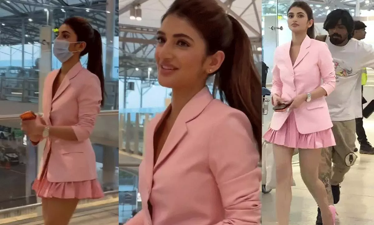 ఈ వీడియోలో శ్రీలీల ధరించిన డ్రెస్ అత్యంత ప్రత్యేకంగా డిజైన్ చేసారు. పిక్కల పైకి తేలిపోయే పొట్టి మిడ్డీపై స్టైలిష్ క్రీమ్ కలర్ సూట్ ధరించి తాను మాత్రం ఇతరుల కంటే సంథింగ్ స్పెషల్ అనిపించుకుంది. ఎక్కడికో ప్రయాణం అవుతూ విమానాశ్రయ టెర్మినల్లో మాస్క్ పెట్టుకుని కనిపిస్తున్నా కానీ.. ఈ భామ గ్లామర్ ఏమాత్రం తగ్గలేదు. తెలుగమ్మాయి అలా నడిచి వెళుతుంటే ఆ పొట్టి మిడ్డీ ఇంకా పైపైకి తేలిపోతూ థై సొగసులను ఎలివేట్ చేస్తోంది. మొత్తానికి శ్రీలీల ఇచ్చిన ఈ గ్లామర్ ట్రీట్ అభిమానులకు కంటిమీద కునుకు లేకుండా చేస్తోంది.