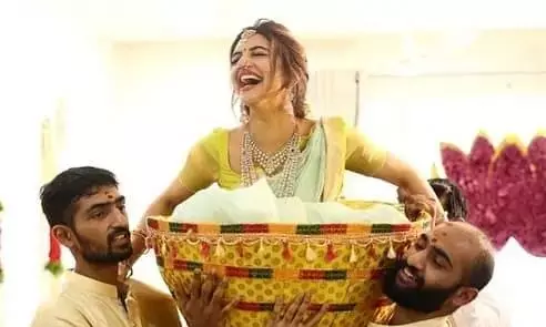 By: Tupaki Desk | 1 Jun 2025 6:07 PM ISTటాలీవుడ్ స్టార్ హీరోయిన్ శ్రీలీల రీసెంట్ గా తన సోషల్ మీడియాలో షేర్ చేసిన ఫోటోలు రకరకాల చర్చలకు దారి తీశాయి. తాజాగా శ్రీలీలీ ఆ ఫోటోలకు క్లారిటీ ఇస్తూ నెట్టింట జరుగుతున్న డిస్కషన్స్ కు ఫుల్ స్టాప్ పెట్టింది. నీలి రంగు చీరలో బుగ్గలపై పసుపు, తన చుట్టూ ఫ్యామిలీ మెంబర్స్ ఒక ప్లేట్ లో పసుపు, కుంకుమ పట్టుకుని ఉండటంతో శ్రీలీల ఎవరికీ చెప్పకుండా సైలెంట్ గా ఎంగేజ్మెంట్ చేసుకుందనుకున్నారంతా.