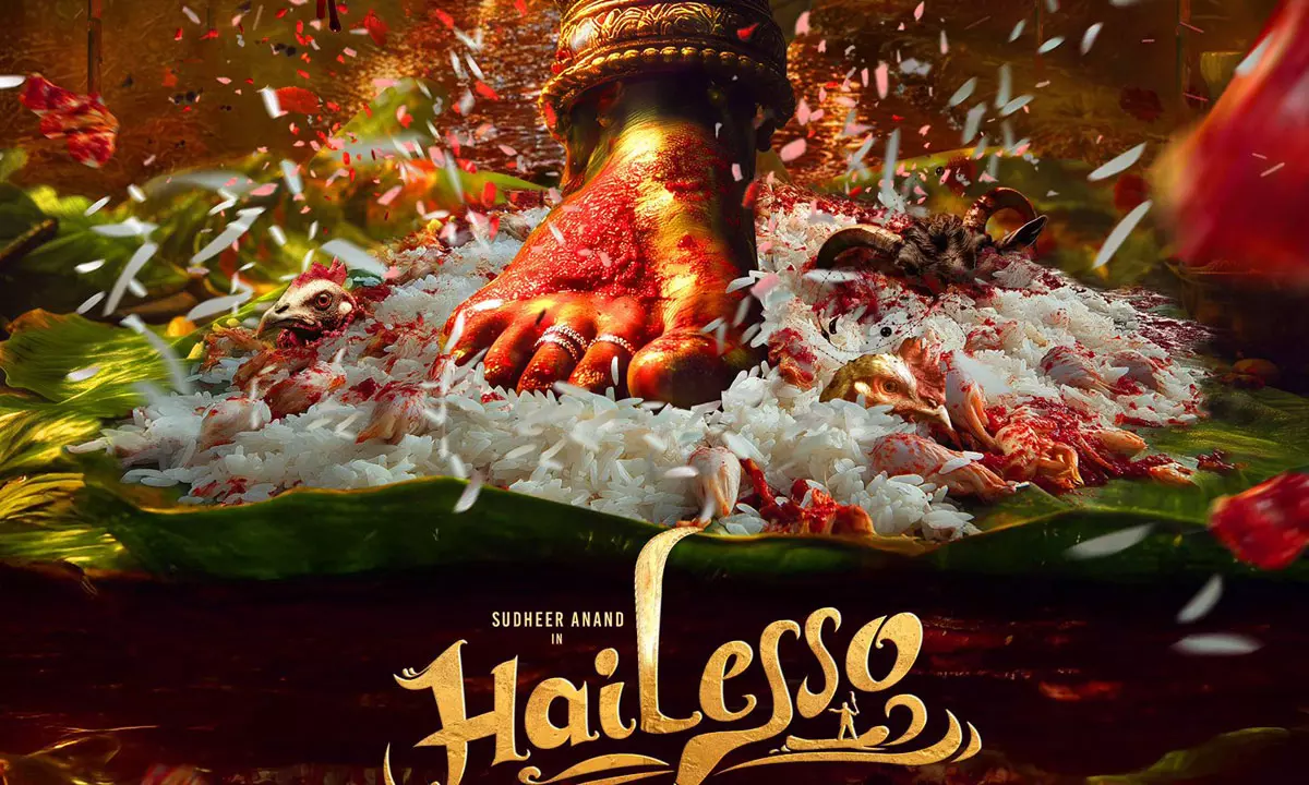 అది కూడా గంభీరంగా పచ్చ రంగు ఆకుపై ఉంది. ఆ పక్కన సింధూరం రంగులో అన్నం, కోడి- మేక తలలు ఉన్నాయి. దీంతో సినిమా.. గ్రామీణ నేపథ్యంలో జాతరను బ్యాక్ డ్రాప్ ను తీసుకున్నారని తెలుస్తోంది. పోస్టర్ లో రక్తంతో తడిసిన కత్తి ఉండటం గమనార్హం. అయితే మూవీ తెలుగు, తమిళ, కన్నడ, మలయాళంలో రిలీజ్ కానుంది.