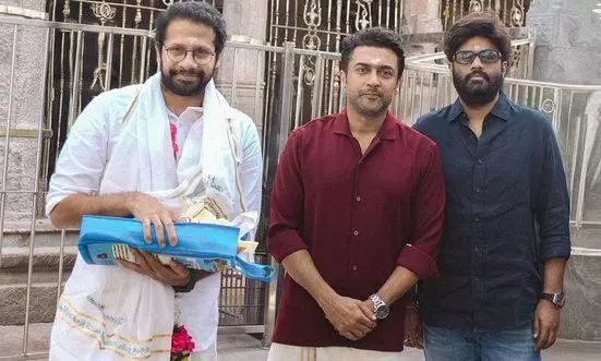 సితార ఎంటర్టైన్మెంట్స్ బ్యానర్లో రూపొందుతున్న ఈ సినిమాకు సంబంధించిన పూజా కార్యక్రమాలు గతంలోనే జరిగిన విషయం తెల్సిందే. తాజాగా ఈ సినిమా మేకర్స్ పళని మురుగన్ ఆలయ సన్నిధిలో ప్రత్యేక పూజలు చేశారు. షూటింగ్ ప్రారంభంకు ముందు పళని మురుగన్ను దర్శించుకున్నట్లు మేకర్స్ చెప్పుకొచ్చారు. పళని మురుగన్ ఆలయాన్ని సందర్శించిన వారిలో హీరో సూర్యతో పాటు దర్శకుడు వెంకీ అట్లూరి, నిర్మాత నాగ వంశీ ఉన్నారు. వీరితో పాటు మరికొందరు చిత్ర యూనిట్ సభ్యులు ఉన్నారు. వెంకీ తమిళ హీరో ధనుష్ తో చేసిన సర్ సినిమా భారీ విజయాన్ని సొంతం చేసుకున్న నేపథ్యంలో తమిళనాట కూడా సూర్య-వెంకీ-వంశీ సినిమాపై అంచనాలు భారీగా ఉన్నాయి.