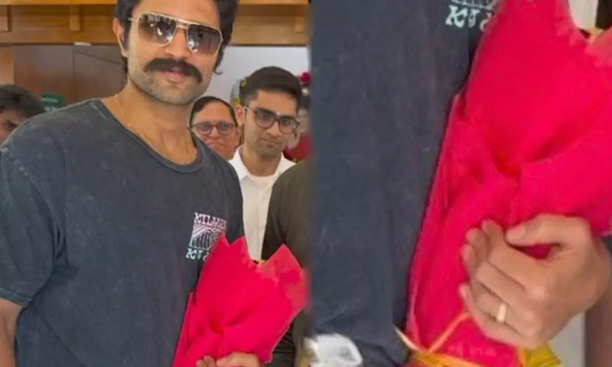విషయంలోకి వెళ్తే.. విజయ్ దేవరకొండ ఎంగేజ్మెంట్ తర్వాత మొదటిసారి మీడియా ముందు కనిపించారు. పుట్టపర్తిలోని సత్యసాయి బాబా మహా సమాధిని దర్శించుకోవడం కోసం విజయ్ దేవరకొండ తన ఫ్యామిలీ తో కలిసి ఇక్కడికి వచ్చారు. అయితే పుట్టపర్తికి వచ్చిన సమయంలో కొంతమంది అక్కడి స్థానికులు విజయ్ దేవరకొండకు బొకే ఇచ్చి వెల్కమ్ చెప్పారు. సాధారణంగా ఒక హీరో వస్తున్నాడు అంటే ఆ హడావిడి మాములుగా ఉండదు. అలా మీడియా వాళ్లందరూ అక్కడ గుమిగూడి విజయ్ దేవరకొండను ఫోటోలు, వీడియోలు తీయడం మొదలుపెట్టారు. ఈ ఫొటోస్, వీడియోస్ నెట్టింట్లో వైరల్ గా మారడంతో ఈ ఫొటోస్ లో నెటిజన్స్ ఓ విషయాన్ని గుర్తుపట్టారు. అదేంటంటే విజయ్ దేవరకొండ చేతికి ఎంగేజ్మెంట్ రింగు.. ఎంగేజ్మెంట్ తర్వాత ఫస్ట్ టైం మీడియా ముందుకు వచ్చిన విజయ్ దేవరకొండ.. చేతివేలికి రింగ్ తో కనిపించడంతో ఇది ఎంగేజ్మెంట్ రింగ్ అని అందరూ భావిస్తున్నారు.