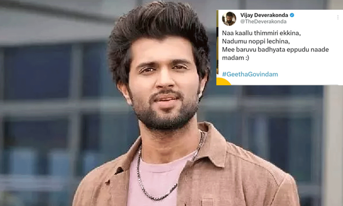 విజయ్ దేవరకొండ, రష్మిక మందన్న అనగానే మనకు ముందుగా గుర్తొచ్చే సినిమా 'గీతగోవిందం'. ఈ సినిమా షూటింగ్ సమయంలోనే వీరిద్దరి మధ్య మంచి స్నేహం ఏర్పడింది. అయితే 2018, జూన్ 23న ప్రమోషన్ల కోసం విజయ్ ఒక ట్వీట్ చేస్తూ.. "నా కాళ్లు తిమ్మిరి ఎక్కినా, నడుము నొప్పి లేచినా మీ బరువు బాధ్యత ఎప్పుడూ నాదే మేడమ్" అని రాసుకొచ్చారు. సినిమాలో రష్మికను భుజాన ఎత్తుకుని నడిచే సీన్ ఉద్దేశించి అప్పట్లో ఈ ట్వీట్ చేశారు. కానీ, కాలక్రమంలో ఆ మాటలు కేవలం సినిమాకే పరిమితం కాకుండా, రష్మిక జీవిత బాధ్యతను కూడా విజయ్ నిజంగానే తీసుకుంటారని అప్పట్లో ఎవరూ ఊహించలేదు. ఇక ఇప్పుడు వీరిద్దరూ ఒక్కటవుతున్న తరుణంలో ఈ ట్వీట్ను నెటిజన్లు బయటకు తీసి, "అప్పుడే మాట ఇచ్చేశావా విజయ్?" అంటూ కామెంట్లతో ముంచెత్తుతున్నారు.