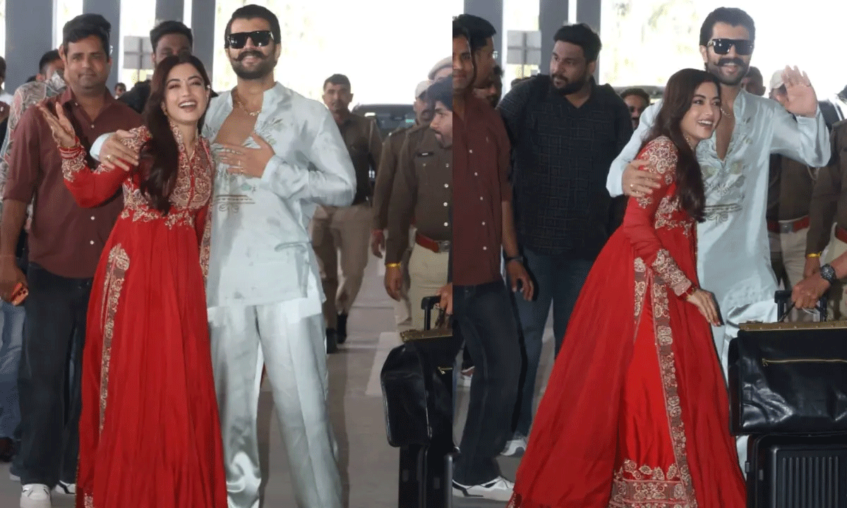 వైట్ కుర్తా సెట్ లో విజయ్ దేవరకొండ.. రెడ్ కలర్ పైజామాలో రష్మిక మందన్న తొలిసారి వివాహం తర్వాత ఉదయ్ పూర్ ఎయిర్పోర్ట్లో కనిపించి సందడి చేశారు. ఇక జంటగా కనిపించడంతో అభిమానులు ఆనందంతో ఉక్కిరిబిక్కిరి అయిపోయారు. ఇకపోతే అభిమానులు తమ వైపు చూపిస్తున్న ప్రేమాభిమానాలకు ఈ జంట కూడా సంతోషంతో మునిగితేలుతున్నారు.