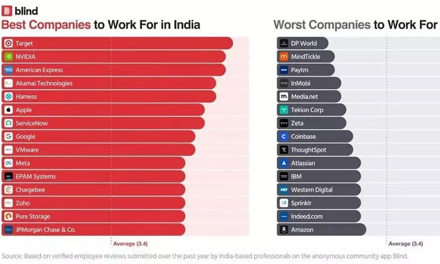2025 బ్లైండ్ రిపోర్ట్ ర్యాంకింగ్స్ వచ్చేశాయ్. కొన్ని కంపెనీల్లో పనిచేసేవాళ్ల అభిప్రాయాలు, వాళ్ల అనుభవాలు ఆసక్తికరంగా ఉన్నాయి.