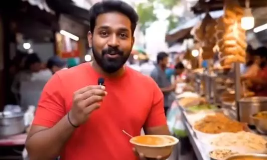 సాధారణంగా ఫుడ్ బ్లాగర్లు స్వయంగా వివిధ ప్రాంతాలకు వెళ్లి, అక్కడి స్థానిక వంటకాలను రుచి చూసి, వాటి గురించి తమ అభిప్రాయాలను వీడియోల రూపంలో పంచుకుంటారు. కానీ, 'వీయ 3' క్రియేట్ చేసిన ఈ వీడియోలో చెన్నైలోని ఒక కాలనీలో ఫుడ్ బ్లాగర్ స్ట్రీట్ ఫుడ్ను ఆస్వాదిస్తూ దాని గురించి మాట్లాడుతున్న దృశ్యాలు అచ్చం నిజంగా జరిగినట్లే ఉన్నాయి. తన ముఖ కవళికలు, ఆహారాన్ని పట్టుకునే విధానం అన్నీ చాలా న్యాచురల్ గా కనిపిస్తున్నాయి.