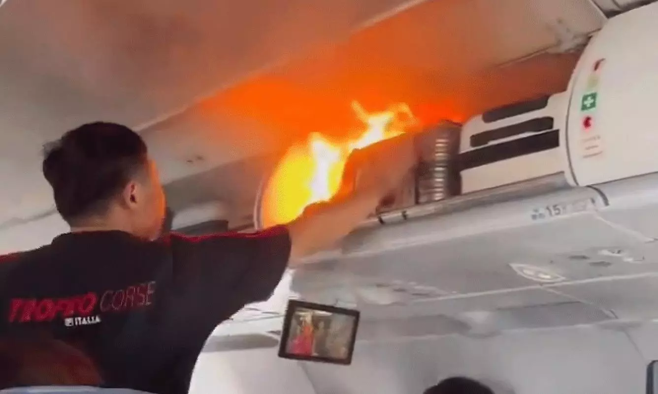 గాల్లో ప్రయాణిస్తున్న సమయంలో ఓ ప్రయాణికుడి లగేజీలో అకస్మాత్తుగా మంటలు చెలరేగి విమానంలో భయానక పరిస్థితి నెలకొంది.