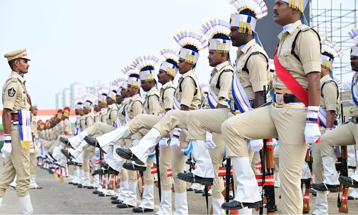 గణతంత్ర వేడుకల కోసం ముందస్తు సన్నాహాల్లో భాగంగా శనివారం ఉదయం పరేడ్ ఫుల్ డ్రెస్ రిహార్సల్ ను ఘనంగా నిర్వహించారు. పరేడ్ రిహార్సల్ కు డీజీపీ హరీష్ కుమార్ గుప్తా, సాధారణ పరిపాలన శాఖ ముఖ్య కార్యదర్శి జే. శ్యామలరావు హాజరయ్యారు. జంగారెడ్డి గూడెం ఏఎస్పీ పరేడ్ కమాండర్ ఆర్. సుస్మిత నుంచి డీజీపీ గౌరవ వందనం స్వీకరించారు. ముందుగా ఇండియన్ ఆర్మీ నాయిబ్ సుబేదార్ ఎల్.కే. ప్రసాద్, కర్నూలు ఏపీఎస్పీ రెండవ బెటాలియన్ రిజర్వ్ ఇన్ స్పెక్టర్ జీవీ రామి రెడ్డి, సీఆర్పీఎఫ్ రిజర్వ్ ఇన్ స్పెక్టర్ చెన్వీర్ గౌడ, కేరళ ఆర్మ్ డ్ పోలీస్ సీవీ జన్ సాన్, విశాఖపట్టణం ఏపీఎస్పీ 16 వ బెటాలియన్ కు ఎస్వీ రమణ, ఏపీ బ్రాస్ బాండ్ లో ఏపీఎస్పీ 11 వ బెటాలియన్ కు చెందిన టీవీ. రమణ, ఏపీఎస్పీ 6 వ బెటాలియన్ కు చెందిన ఎస్. శ్రీనివాసులు, ఇండియన్ ఆర్మీ పైప్ బాండ్ కు సుబేదార్ మొహంతీ, జీవీ సుబ్బారావు, ఎన్.సీ.సీ. బాయ్స్ కు జయంత్ వర్లోత్, ఎన్.సీ.సీ. గర్ల్స్ కు రేవతి, ఏపీ సోషల్ వెల్ఫేర్ కు కే. సునీత్ కుమార్, భారత్ స్కౌట్స్ అండ్ గైడ్స్ కు ఏపీ మోడల్ స్కూల్, పాణ్యం కు చెందిన వై. ఇషాక్ రాజు, యూత్ రెడ్ క్రాస్ కు పి. సాయి రోహిత్ లు కమాండర్ లుగా వ్యవహరించారు.