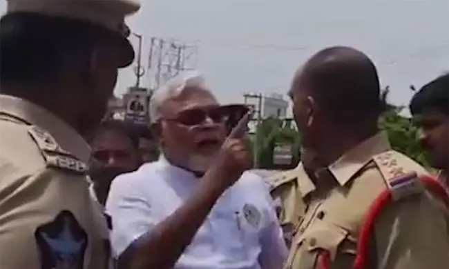 ఈ క్రమంలోనే అన్ని జిల్లాల్లోని కలెక్టరేట్లు, ఆర్డీవో కార్యాలయాల వద్ద నిరసన తెలిపి.. అనంతరం.. కలెక్టర్లకు , ఆర్డీవోలకు వినతి పత్రాలు ఇవ్వాలని నిర్ణయించుకున్నారు. ఈ క్రమంలో పల్నాడు జిల్లాలో మాజీ మంత్రి అంబటి రాంబాబు.. తన అనుచరులతో కలెక్టరేట్ వద్దకు వచ్చారు. ఓ అరగంట పాటు నిరసన తెలిపారు.ఈ కార్యక్రమంలో వందల మంది అనుచరులను పోగు చేశారు. వారందరితోనూ కలిసి కలెక్టరేట్లోకి వెళ్లాలని నిర్ణయించారు. అయితే.. అప్పటికే అక్కడకు చేరుకున్న పోలీసులు.. వీరిని అడ్డుకున్నారు. ఒక ప్రతినిధి బృందంగా ఏర్పడి ఐదారుగురు మాత్రమే కలెక్టరేట్లోకి వెళ్లాలని సీఐ సూచించాడు. అయితే.. అంబటి దీనిని వ్యతిరేకించారు.