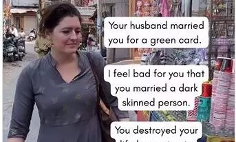 ఈ సందర్భంగా... ఆమె ప్రస్తావించిన వ్యాఖ్యలలో... "మీ భర్త గ్రీన్ కార్డ్ కోసం మిమ్మల్ని వివాహం చేసుకున్నాడు" అనేది ఒకటికాగా... "తాను నల్లటి చర్మం గల వ్యక్తిని వివాహం చేసుకున్నందుకు ప్రజలు బాధపడ్డారు" అని కూడా ఆమె అన్నారు. ఇదే సమయంలో... "నువ్వు భారతదేశానికి వెళ్లి నీ జీవితాన్ని నాశనం చేసుకున్నావు" అనే విమర్శను తాను ఎదుర్కొన్నట్లు తెలిపారు.