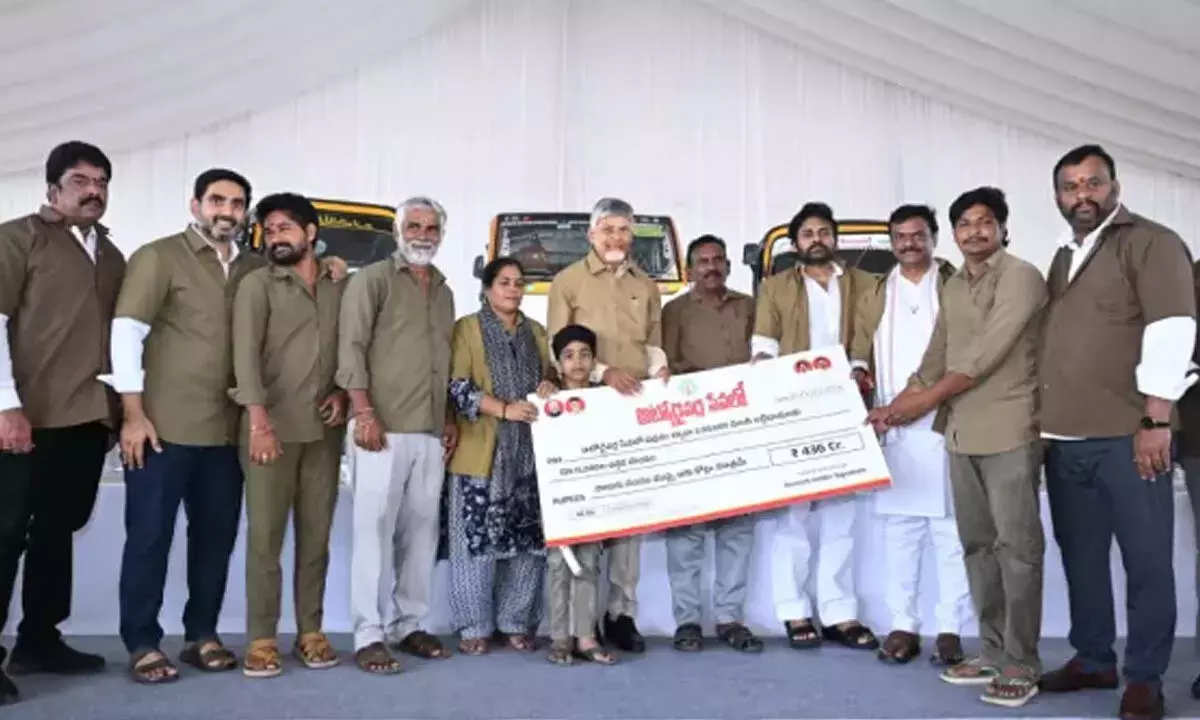 రాష్ట్రంలో మహిళలకు ఉచిత బస్సు ప్రయాణాన్ని కూటమి ప్రభుత్వం తీసుకువచ్చిన విషయం తెలిసిం దే. దీంతో ఆటో, ట్యాక్సీ, మ్యాక్సీలపై ఆధారపడి జీవిస్తున్న కుటుంబాలకు భారంగా మారింది. దీంతో ఈ సమస్యను పరిష్కరించేందుకు రాష్ట్ర ప్రభుత్వం ఆటో డ్రైవర్ల సేవలో కార్యక్రమం ద్వారా వినూత్న పథకానికి శ్రీకారం చుట్టింది. దీనిలో ప్రతి సొంత వాహన డ్రైవర్కు ఏటా రూ.15 వేల చొప్పున జమ చేయనున్నారు. ప్రతి దసరాకు ఈ పథకాన్ని అమలు చేయనున్నట్టు సీఎం చంద్రబాబు తెలిపారు. తాజాగా నిధులు విడుదల చేశారు.