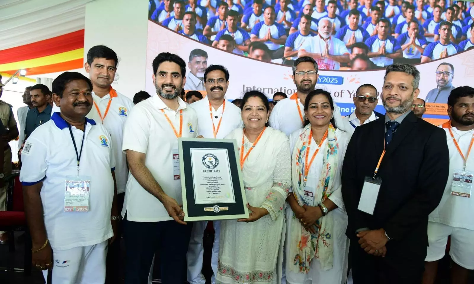 ఇక ఏపీలో అంతటా ఒక లక్షా 30 వేల పైన ప్రాంతాలలో యోగా చేశారు. రెండు కోట్ల 17 లక్షల మంది యోగాలో భాగస్వాములు అయి చేశారు. ఇదంతా ఒక రికార్డుగా బాబు చెప్పారు. లక్షా 44 వేల మంది యోగా ట్రైనర్లు తయారు అయ్యారు. ఇది కూడా రికార్డుగానే ఉంది.