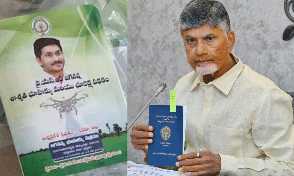 గత ప్రభుత్వంలో ల్యాండ్ టైటిలింగ్ యాక్టు ప్రవేశపెట్టి అప్పటి వరకు ఉన్న పట్టాదారు పాసుపుస్తకాలను రద్దు చేశారు. వీటి స్థానంలో వైఎస్ఆర్ జగనన్న శాశ్వత భూహక్కు మరియు భూరక్ష పథకం పేరిట కొత్త పుస్తకాలు పంపిణీ చేశారు. ఇందులో మాజీ ముఖ్యమంత్రి వైఎస్ జగన్మోహనరెడ్డి ఫొటోను ముద్రించారు. రైతు భూమికి జగన్ ఫొటో ఎందుకని అప్పట్లోనే ప్రశ్నలు వినిపించినా, ప్రభుత్వ విధానం కావడంతో ఎవరూ ఏం అనలేకపోయారు. ఎన్నికల ప్రచార సమయంలో మాజీ ముఖ్యమంత్రి జగన్మోహనరెడ్డి సతీమణి వైఎస్ భారతిరెడ్డిని కొందరు రైతులు ఈ విషయమై నిలదీయడం కూడా జరిగింది.