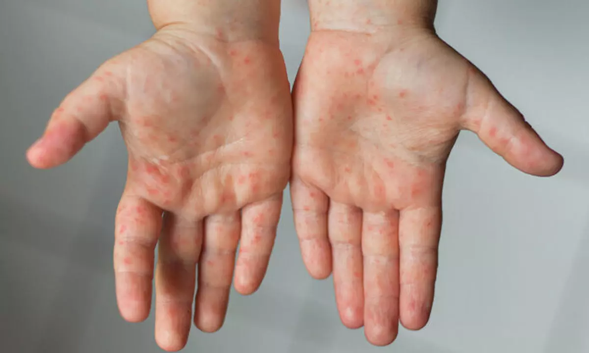 By: Raja Ch | 2 Oct 2025 5:25 PM ISTకోవిడ్-19 మహమ్మారి తరువాత దేశంలో మరో సరికొత్త వైరస్ తెరపైకి వచ్చింది. ఇందులో భాగంగా... మధ్యప్రదేశ్ రాష్ట్ర రాజధాని భోపాల్ లోని పాఠశాల పిల్లలలో ఒక ప్రత్యేకమైన అనారోగ్యం వ్యాపిస్తూ కలకలం సృష్టిస్తోంది. ఈ వైరస్ సోకిన వారికి చేతులు, పాదాలు, అరికాళ్లు, మెడ కింద, నోటిలో ఎర్రటి దద్దుర్లు కనిపిస్తున్నాయి. తర్వాత అవి బొబ్బలుగా మారుతున్నాయి.