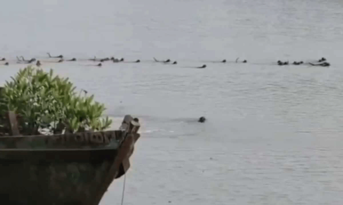 వివరాళ్లోకి వెళ్తే... ఒడిశాలోని ఒక కోతుల గుంపు ఉప్పునీటి మొసలి నుండి తన సహచరుడి కోసం సాహసోపేతమైన ప్రయత్నం చేసింది. కెమెరాలో రికార్డైన ఈ సంఘటన కేంద్రపారా జిల్లాలోని మహాకలపాద ప్రాంతంలో జరిగింది. తాజాగా వైరల్ గా మారిన ఈ ఫుటేజ్ లో కోతుల పెద్ద గుంపు.. మొసలి వైపు ఈదుతూ, తమ సహచరుడిని కాపాడటానికి ప్రయత్నిస్తున్నట్లు ఉంది. ఇలా ఆపదలో ఉన్న తమ సహచరుడి కోసం మొసలితోనే పోరాటానికి అవి చేసిన ప్రయత్నం సంచలనంగా మారింది.