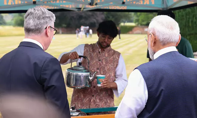 చెకర్స్... బ్రిటన్ ప్రధాని స్టార్మర్ నివాసం. అందులో ఓ టీ స్టాల్ ప్రత్యేకంగా ఏర్పాటైంది. మోదీ, స్టార్మర్ టీ తాగింది అక్కడే. ఇది అఖిల్ పటేల్కు చెందినది. ఈ క్రమంలో మోదీకి టీ ఒంపుతూ.. ఒక చాయ్వాలాకు మరో చాయ్వాలా టీ అందిస్తున్నట్లు వ్యాఖ్యానించాడు అఖిల్ పటేల్.