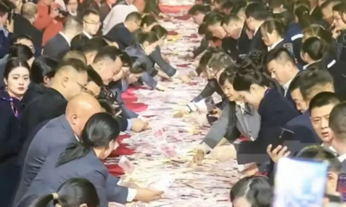 చైనాకు చెందిన ‘హోనాన్ కువాంగ్షాన్ క్రేన్కో’ సంస్థ తన వార్షిక లాభాలను ఉద్యోగులకు పంచడానికి ఒక వినూత్న పద్ధతిని ఎంచుకుంది. ఆ కంపెనీ సీఈఓ కుయ్ పెనుజున్ ఏకంగా 800 టేబుళ్ల మీద వందల కోట్ల నోట్ల కట్టలను పేర్పించారు. ఉద్యోగులకు ఒక నిర్ణీత సమయం ఇచ్చి, ఆ టైమ్లో వారు ఎంత డబ్బు లెక్కపెట్టగలిగితే ఆ సొమ్మంతా వారికే సొంతమని ప్రకటించారు. దీంతో ఎంప్లాయిస్ అంతా ఉత్సాహంతో నోట్ల కట్టలను చకచకా లెక్కపెట్టి చేతుల్లోకి తీసేసుకున్నారు. కొంతమంది అయితే తాము లెక్కపెట్టిన డబ్బును మోయలేక సంచుల కోసం వెతుక్కున్నారంటేనే ఆ సంబరం ఏ స్థాయిలో ఉందో అర్థం చేసుకోవచ్చు.