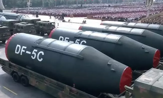By: A.N.Kumar | 4 Sept 2025 3:00 AM ISTబీజింగ్లో జరిగిన విక్టరీ డే పరేడ్లో చైనా ప్రదర్శించిన అణు ఆయుధాలు, అత్యాధునిక రక్షణ సాంకేతికతలు ప్రపంచ భద్రతా వాతావరణంపై తీవ్ర ప్రభావాన్ని చూపుతున్నాయి. ముఖ్యంగా డీఎఫ్–5సీ (DF-5C) ఖండాంతర బాలిస్టిక్ క్షిపణి ప్రదర్శన.. దాని అపారమైన సామర్థ్యాలతో అంతర్జాతీయ సమాజాన్ని ఆందోళనకు గురిచేసింది.