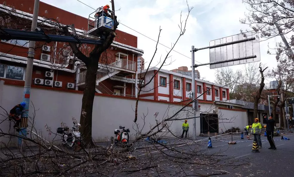 రాకాసి గాలుల కారణంగా చైనా రాజధాని బీజింగ్ లో 300 చెట్లు నేలకూలిపోగా.. పలు వాహనాలు దెబ్బ తిన్నాయి.