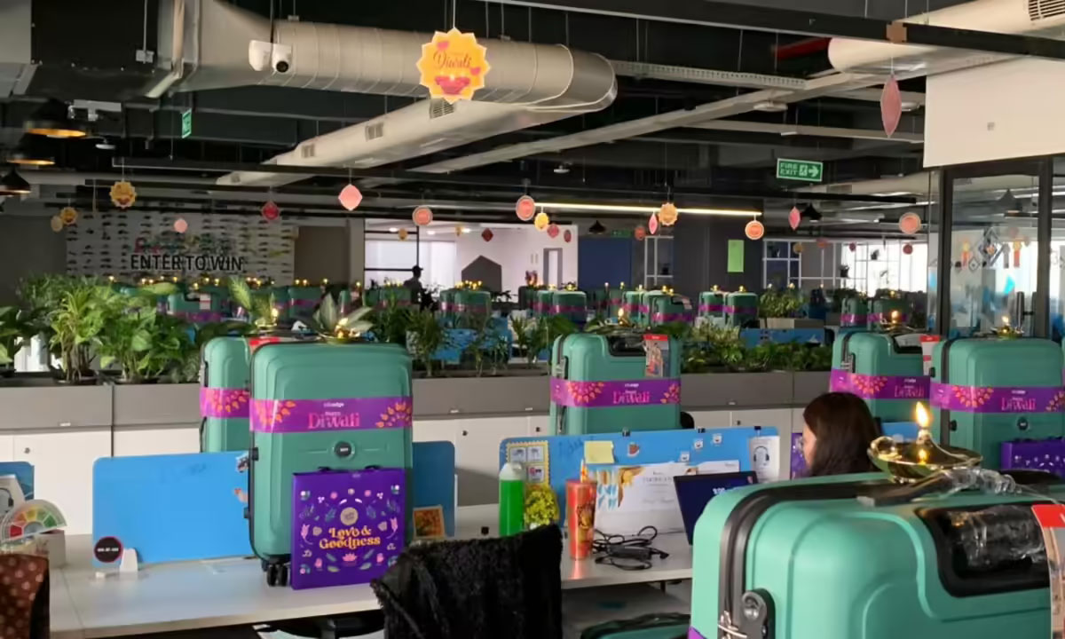 వివరాళ్లోకి వెళ్తే... తాజాగా నెట్టింట ఓ వీడియో వైరల్ గా మారింది. అందులో... ఓ కార్పొరేట్ కంపెనీ తమ ఉద్యోగులకు అందించిన సర్ ప్రైజ్ బహుమతుల దృశ్యాలు ఉన్నాయి. ఇందులో భాగంగా... ఇంకా స్టాఫ్ రాకుండా ఖాళీగా ఉన్న ఆఫీసులో ప్రతీ ఛైర్ ముందు టేబుల్ పైనా బహుమతులతో కూడిన ట్రాలీ బ్యాగులు కనిపిస్తున్నాయి. వాటితో పాటు ఓ స్వీట్ ప్యాకెట్ ను కూడా ఇచ్చింది. ఇవి రెండూ గిఫ్ట్ ప్యాక్ చేసి ఉన్నాయి.