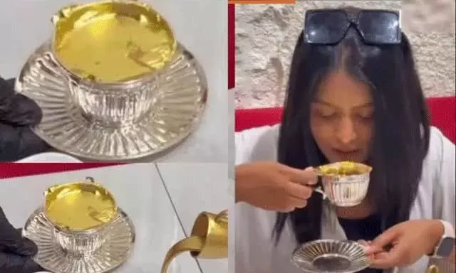 వెండి కప్పుల్లో 24 క్యారెట్స్ బంగారు టీ... ఏమి'టీ'ది?