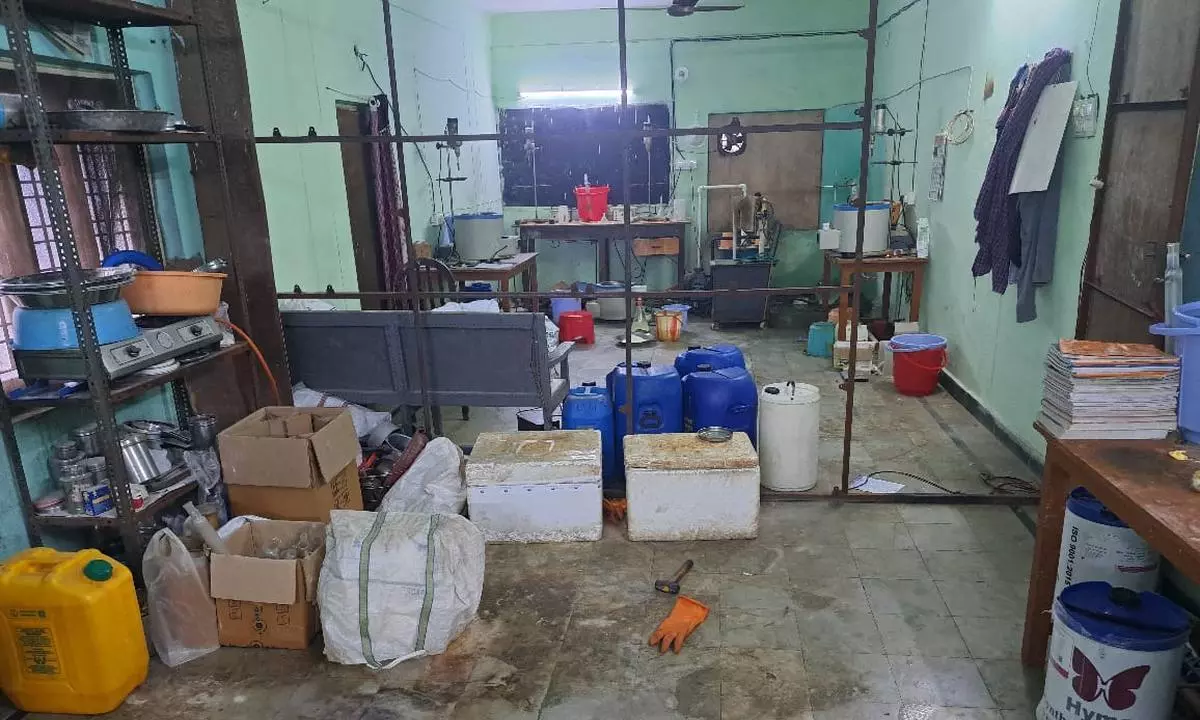 సికింద్రాబాద్ లోని బోయిన్ పల్లిలో ఒక పాఠశాలలో కల్లులో వాడే అల్ర్పాజోలం మాత్రలు తయారు చేస్తూ దొరికిపోయింది.