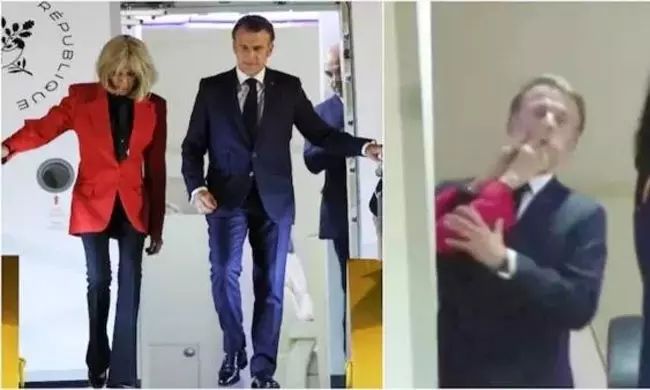 ఆదివారం రాత్రి ఫ్రాన్స్ అధ్యక్షుడు ఇమ్మాన్యుయేల్ మెక్రాన్కు చెందిన అధికారిక విమానం వియత్నాంలోని హనోయిలో ల్యాండ్ అయింది. కొద్ది క్షణాల తర్వాత డోర్లు తెరవబడ్డాయి. అప్పుడు ఒక దృశ్యం అందరినీ ఆశ్చర్యపరిచింది. మెక్రాన్ను ఆయన భార్య చెంపపై కొడుతున్నట్లుగా ఉంది. వెంటనే మెక్రాన్ తేరుకుని ఆమె చేతిని పక్కకు నెట్టివేశారు. ఆ తర్వాత మెక్రాన్ భార్య బ్రిగిట్టే విమానంలోనే ఉండిపోయి, బయటకు రాలేదు. దీనికి సంబంధించిన దృశ్యాలు సామాజిక మాధ్యమాల్లో వేగంగా వ్యాపిస్తున్నాయి.