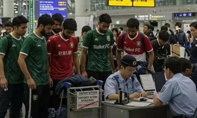 By: A.N.Kumar | 18 Sept 2025 4:00 AM ISTజపాన్లో టోర్నమెంట్ ఆడటానికి వెళ్తున్నామని చెప్పి, పాకిస్తాన్ నుండి 22 మంది వ్యక్తులు బయలుదేరారు. వీరు పాకిస్తాన్ విదేశాంగ మంత్రిత్వ శాఖ నుండి నకిలీ 'నో అబ్జెక్షన్ సర్టిఫికెట్లు' పొంది, వాటిని ఉపయోగించారు. అయితే జపాన్లోని విమానాశ్రయం ఇమ్మిగ్రేషన్ అధికారులు వారిని విచారించగా, వారు నిజమైన క్రీడాకారులు కాదని, కేవలం అక్రమంగా దేశంలోకి ప్రవేశించడానికి ప్రయత్నిస్తున్నారని తేలింది. దీనితో వారిని వెంటనే వెనక్కి పంపారు. ఈ సంఘటన వెనుక పాకిస్తాన్ లోనే మాలిక్ వకాస్ అనే వ్యక్తి సూత్రధారిగా ఉన్నాడని దర్యాప్తులో వెల్లడైంది. అతను "గోల్డెన్ ఫుట్బాల్ ట్రయల్" అనే నకిలీ క్లబ్ను నడుపుతూ, ఒక్కో వ్యక్తి నుండి భారీగా డబ్బు వసూలు చేసి కోటికి పైగా లాభం పొందాడని తెలిసింది.
