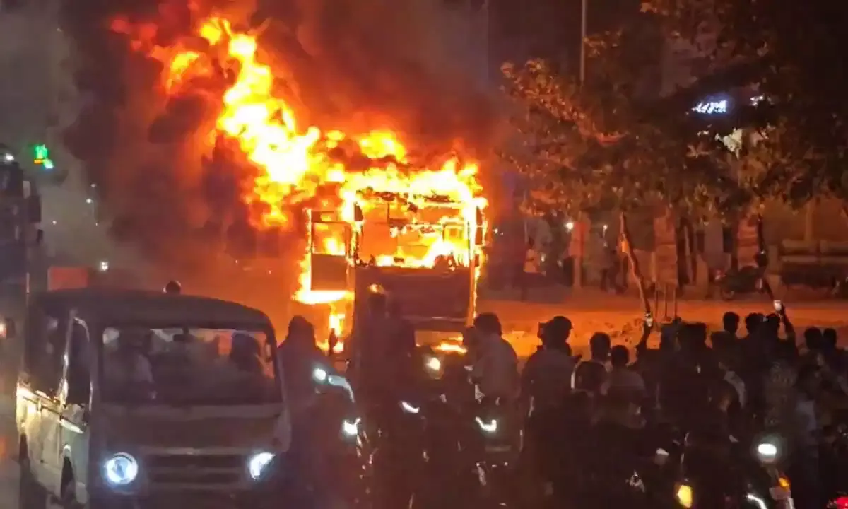 అర్ధరాత్రి బస్సులో పొగలు.. డ్రైవర్ ఏం చేశాడంటే..? పూర్తిగా దగ్ధమైన బస్సు..