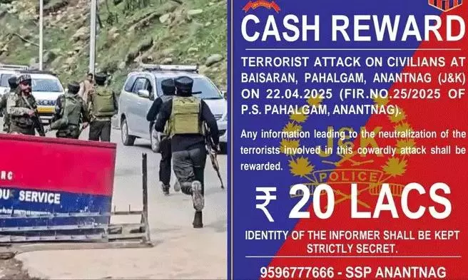 ఇదే సమయంలో... మంగళవారం పహల్గాంలో దాడికి పాల్పడిన ముష్కరుల ఆచూకీ తెలిపినవారికి రూ.20 లక్షల బహుమతి ఇస్తామని జమ్మూకశ్మీర్ లోని అనంతనాగ్ పోలీసులు ప్రకటించారు. ఈ పిరికిపంద చర్యలో పాల్గొన్న ఉగ్రవాదులను మట్టుబెట్టడానికి లేదా బంధించడానికి సహకరించే సమాచారం ఇచ్చేవారికి ఈ రివార్డు అందుతుందని ఎక్స్ వేదికగా తెలిపారు.