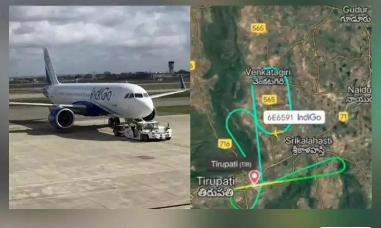 ఫ్లైట్ ట్రాడర్ 24లో విమాన మార్గంలో 6ఈ 6591 విమానం తిరుపతిలోని వెంకటగిరి పట్టణానికి చేరుకుని, యూ-టర్న్ తీసుకున్నట్లు చూపించింది. ఆ తర్వాత అది సుమారు 40 నిమిషాల పాటు గాలిలో తిరుగుతూ, తిరిగి 8:34 గంటలకు తిరుపతి విమానాశ్రయానికి వచ్చింది! ఆ తర్వాత ఆ విమానం రద్దు చేయబడింది! ఆ రోజు హైదరాబాద్ కు వెళ్లాల్సిన చివరి విమానం ఇదేనని తెలుస్తోంది.