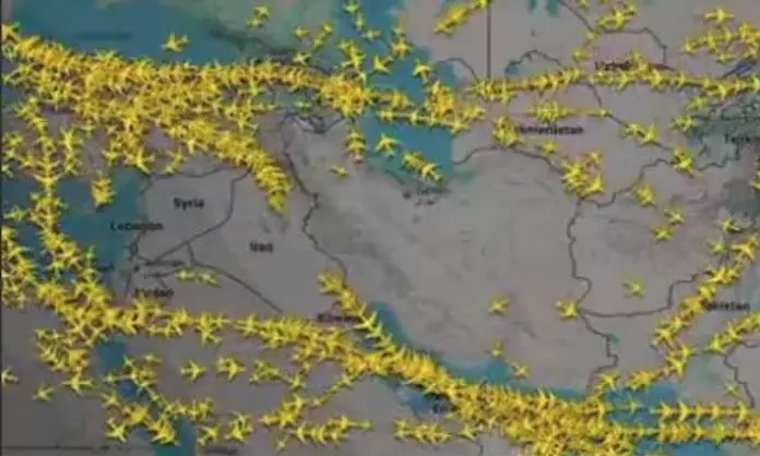 ఇరాన్ పై ఇజ్రాయెల్ డ్రోన్లు, క్షిపణులతో విరుచుకుపడుతుంది. దీంతో.. ఇరాన్ గగనతలంపై ప్రయాణించే వాణిజ్య, ప్రజా విమానాలు వేగంగా దారి మళ్లించబడ్డాయి. దీంతో.. ఇరాన్ - ఇరాక్ గగనతలం పూర్తిగా ఖాళీగా కనిపిస్తోంది! దీనికి సంబంధించిన వీడియో వైరల్ గా మారింది.