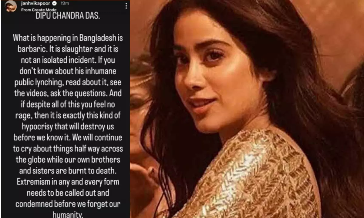 ఈ నేపథ్యంలో 28 ఏళ్ల నటి జాన్వీ కపూర్ తన ఇన్ స్టాగ్రామ్ స్టోరీస్ ఈ ఘటనపై స్పందించారు. ఇందులో భాగంగా... బంగ్లాదేశ్ లో జరుగుతున్నది పూర్తి అనాగరికమని.. ఇది ఊచకోత అని.. అది ఒక వివక్త సంఘటన కాదని తెలిపారు. ఈ అమానవీయ బహిరంగ హత్యాకాండ గురించి మీకు తెలియకపోతే.. దాని గురించి చదవాలని, వీడియోలు చూడాలని, ప్రశ్నలు అడగాలని ఆమె సూచించారు.
