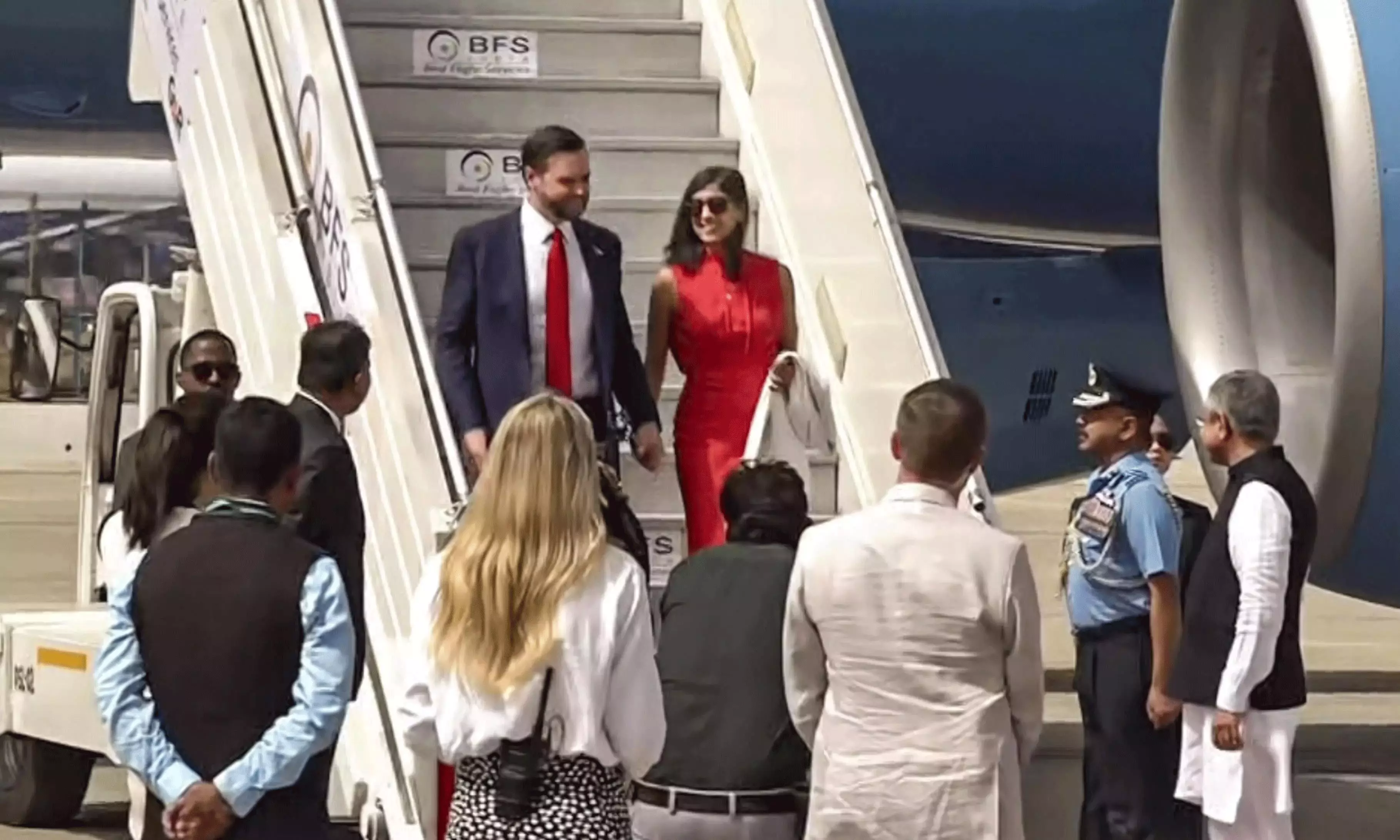ఈ సందర్భంగా పాలెం ఎయిర్పోర్ట్లో వాన్స్ కుటుంబం వస్త్రధారణ ప్రత్యేక ఆకర్షణగా నిలిచింది.