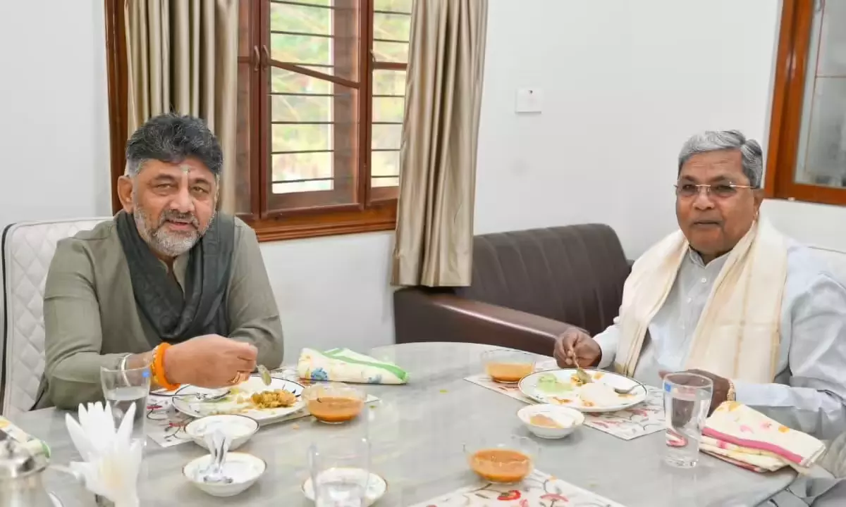 By: Tupaki Political Desk | 2 Dec 2025 10:53 AM ISTమనకు విందు రాజకీయాలు కొత్తేం కాదు. ప్రధాన నేతల మధ్య సమస్యలు బూడిదమూసిన నిప్పులా మారినపుడు ఇలాంటి విందులు మహా పసందుగా ఉంటాయి. ఈ భేటీల్లో సమస్యల్ని పరిష్కరించుకోవడం కన్నా...మా మధ్య అంతా బాగానే ఉంది అనే సందేశం పార్టీకి, ప్రజలకు ఇచ్చేందుకే నేతలు ఇష్టపడుతుంటారు. తాజాగా కర్ణాటకలో పవర్ షేరింగ్ వివాదం చిచ్చులా మారుతున్న నేపథ్యంలో బ్రేక్ ఫాస్ట్ భేటీలు ఆసక్తికరంగా మారుతున్నాయి. మొన్నటికి మొన్న ముఖ్యమంత్రి సిద్ధరామయ్య డిప్యూటీ సీఎం డీకే శివకుమార్ ను సాదరంగా బ్రేక్ ఫాస్ట్ కు ఆహ్వానించిన సంగతి తెలిసిందే. ఆ విషయం మీడయాలో సంచలనంగా మారింది. వారు టిఫిన్ లో ఏం తిన్నారు అనేది కూడా చర్చగా నిలిచింది. ప్రతి చర్యకు ప్రతిచర్య ఉంటుందన్న న్యూటన్ మూడో గమన సూత్రాన్ని డీకే బాగా నమ్మినట్టున్నారు. అందుకే వారు కూడా సిద్ధరామయ్యను మంగళవారం బ్రేక్ ఫాస్ట్ కు పిలిచారు.