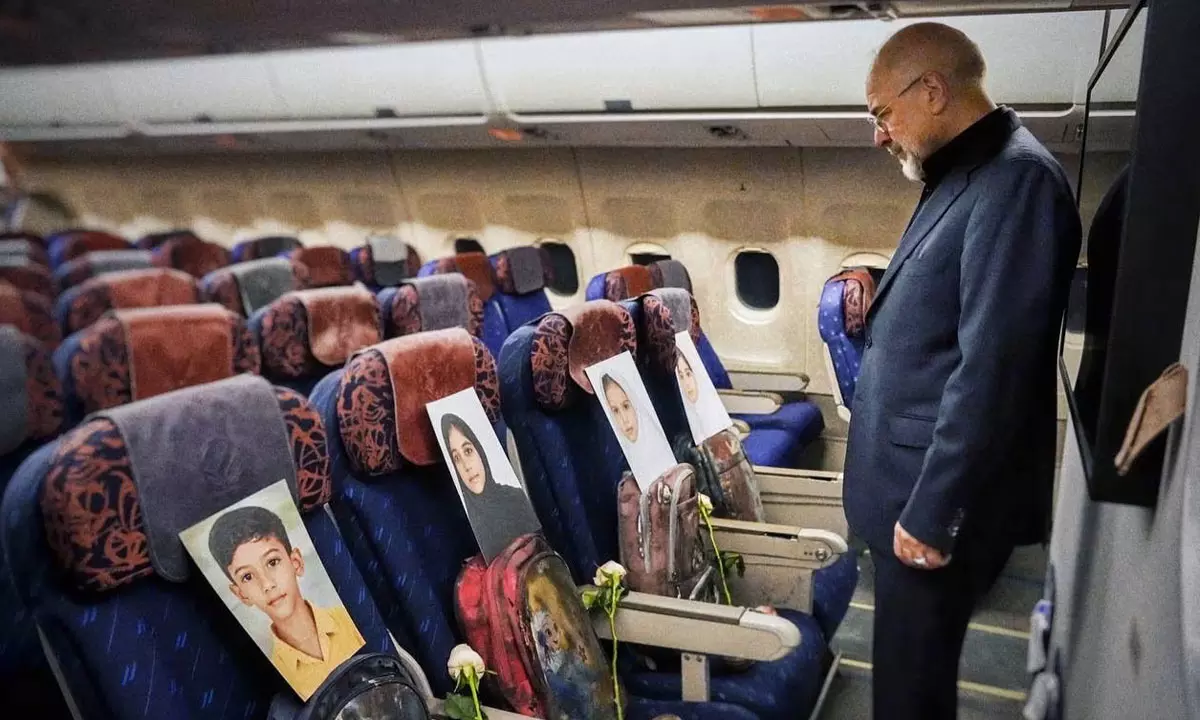 సాధారణంగా ప్రతినిధులు ప్రయాణించే విమానాల్లో సందడి ఉంటుంది. కానీ ఈ విమానంలో మాత్రం భయంకరమైన నిశ్శబ్దం ఆవరించింది. విమానంలోని ప్రతి ఖాళీ సీటులో ఫిబ్రవరి 28న జరిగిన మిస్సైల్ దాడుల్లో అన్యాయంగా ప్రాణాలు కోల్పోయిన పసిపిల్లల ఛాయాచిత్రాలను ఉంచారు. ఆ సీట్లపై రక్తంతో తడిసిన స్కూల్ బ్యాగులు, చిన్నారి పాదరక్షలు, వాడిపోయిన పూలు నివాళిగా అర్పించారు. తమ పిల్లలు రేపు తిరిగి వస్తారని ఆశగా ఎదురుచూసిన తల్లిదండ్రుల ఆవేదన ఆ సీట్లలో ప్రతిబింబించింది.