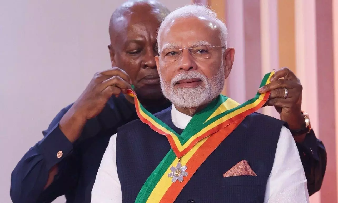 By: Tupaki Desk | 3 July 2025 3:46 PM ISTభారత ప్రధాని నరేంద్ర మోదీకి ప్రపంచ దేశాల నుంచి గౌరవాల జల్లు కురుస్తోంది. ఇటీవల ఘనా దేశం ఆయనకు తన అత్యున్నత పౌర పురస్కారాన్ని అందించింది. ఇది మోదీకి విదేశాల నుంచి లభించిన 24వ అత్యున్నత గౌరవం కావడం విశేషం. భారత ప్రధానిగా సేవలు అందిస్తున్న ఒక నేతకు ఇది ఒక అరుదైన గుర్తింపుగా నిలుస్తుంది.