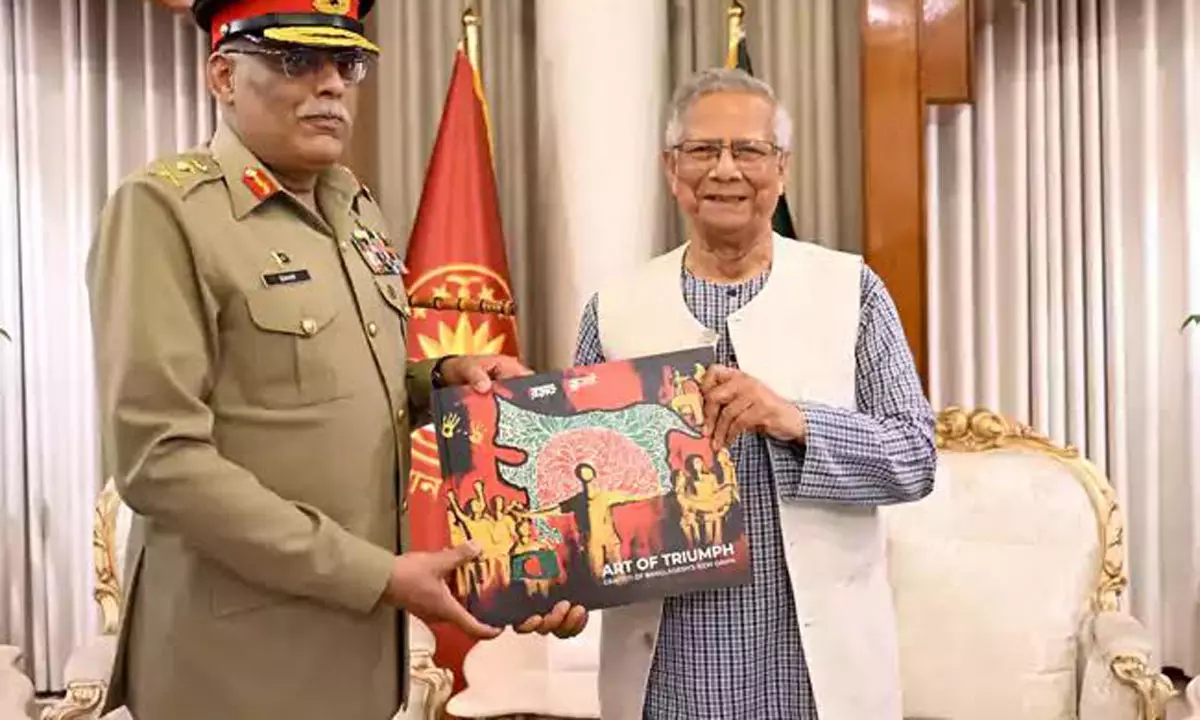 ఇటీవల యూనస్ పాకిస్థాన్ జాయింట్ చీఫ్స్ ఆఫ్ స్టాఫ్ కమిటీ ఛైర్పర్సన్ జనరల్ షంషాద్ మీర్జాకు బహుమతిగా ఒక పుస్తకం అందజేశారు. ఆ పుస్తకం “Art of Triumph” కవర్పై బంగ్లాదేశ్ భూభాగం మ్యాప్ను ముద్రించారు. కానీ, ఈ మ్యాప్లో భారత్కు చెందిన ఏడు ఈశాన్య రాష్ట్రాలైన అస్సాం, మణిపూర్, మేఘాలయ, నాగాలాండ్, మిజోరం, త్రిపుర, అరుణాచల్ప్రదేశ్ లు బంగ్లాదేశ్లో భాగంగా చూపించడం తీవ్ర వివాదానికి దారితీసింది. ఈ వివాదాస్పద చర్య భారత్లో తీవ్ర ఆగ్రహాన్ని రేపింది. భారత భూభాగ సార్వభౌమత్వంపై స్పష్టమైన దాడిగా నెటిజన్లు, విశ్లేషకులు మండిపడుతున్నారు.