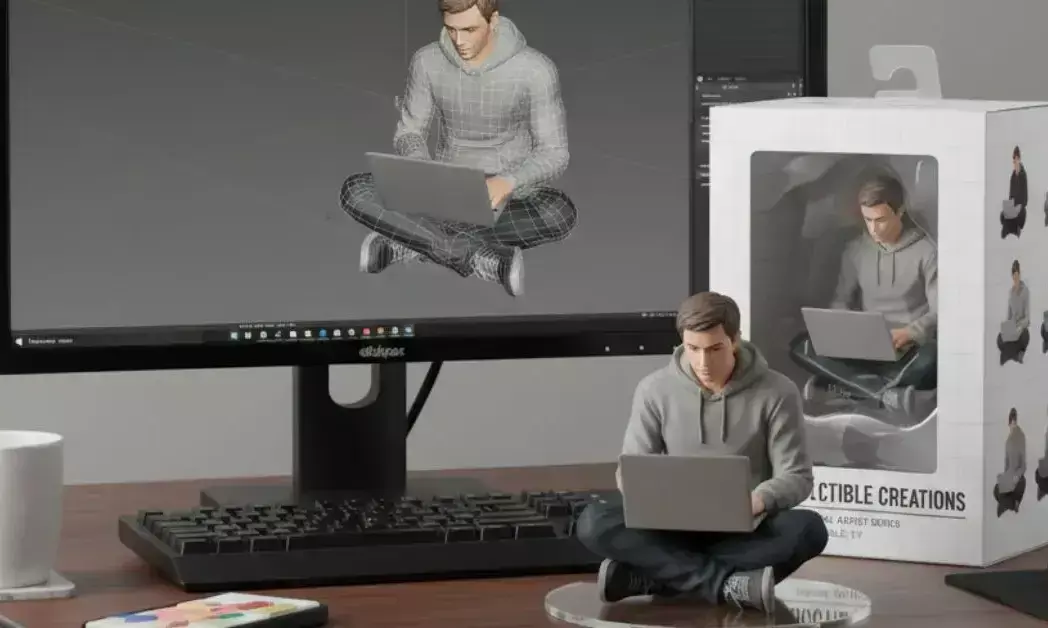 “Create a 1/7 scale commercialised figurine of the characters in the picture, in a realistic style, in a real environment. The figurine is placed on a computer desk. The figurine has a round transparent acrylic base, with no text on the base. The content on the computer screen is a 3D modelling process of this figurine. Next to the computer screen is a toy packaging box, designed in a style reminiscent of high-quality collectible figures, printed with original artwork. The packaging features two-dimensional flat illustrations.” దీనిని కాపీ చేసి పేస్ట్ చేయాలి.
