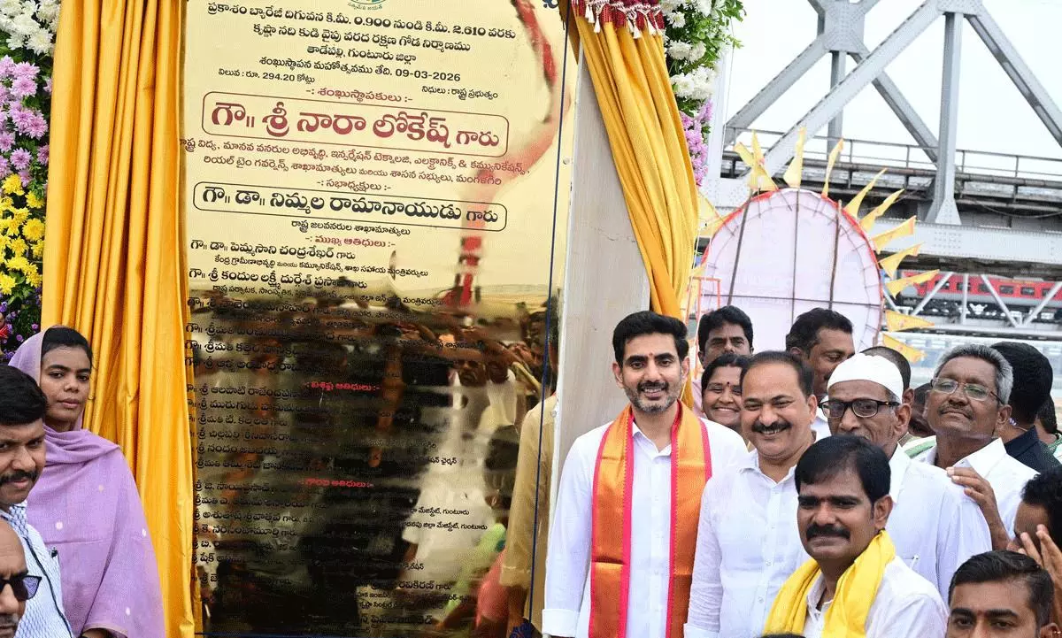 By: Garuda Media | 10 March 2026 6:34 PM ISTగత ఎన్నికలకు ముందు మంగళగిరి నియోజకవర్గం ప్రజలకు ఇచ్చిన హామీలను మంత్రి నారా లోకేష్ నెరవేరుస్తున్నారు. తాజాగా గత ఎన్నికల సమయంలో ఇక్కడి నదీతీర ప్రాంతం వాసుల సమస్యలు పరిష్కరించేందుకు రిటైనింగ్ వాల్ నిర్మిస్తామని చెప్పారు. దీనికి సంబంధించి తాజాగా భూమి పూజ చేయడం గమనార్హం. తాడేపల్లి రిటైనింగ్ వాల్కు శంకుస్థాపన చేయడంతో స్థానికంగా ప్రజలు హర్షం వ్యక్తం చేస్తున్నారు. కాగా.. ఈ రక్షణ గోడ నిర్మాణానికి 294 కోట్ల రూపాయలు ఖర్చుచేయనున్నారు.